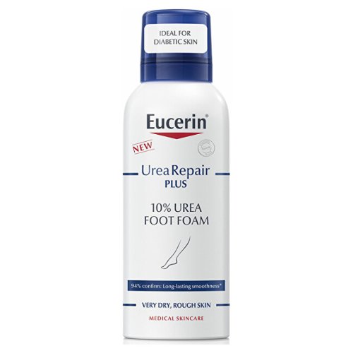Pena na nohy 10% Urea je určená na každodennú starostlivosť o extrémne suchú a hrubú pokožku nôh. Podporuje regeneráciu pokožky, intenzívne ju hydratuje a redukuje otlaky a mozole. Ultraľahká penová konzistencia sa ľahko nanáša a rýchlo sa vstrebáva do pokožky pre celkovo pohodlnú a príjemnú aplikáciu. Pena na nohy je ideálna aj pre osoby so zrelou a/alebo suchou pokožkou a kožnými problémami, ako je xeróza, psoriáza a najmä cukrovka.