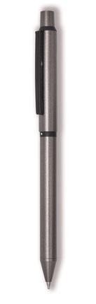 Darčekové multifunkčné pero Penac Multisync kombinuje modré a červené guličkové pero s mikroceruzkou. Elegantné pero 3v1 v metalickom prevedení má štíhle kovové telo, ktorého jednoduchý dizajn dopĺňajú decentné kovové prvky v matnej čiernej farbe. Jednotlivé písacie potreby je možné ľahko voliť vďaka kvalitnému 360 ° otočnému mechanizmu (značky na čiernom prúžku indikujú práve zvolený typ písacej potreby). Dokumentový atrament Penac Mach (podľa DIN ISO 12757/2) s nízkou viskozitou zaisťuje plynulé a hladké písanie. Koniec pera ukrýva gumu bez latexu a PVC. Tuha mikroceruzky je HB 0,5 mm. Náplne vrátane gumy sú vymeniteľné. Dodávané v papierovej darčekovej krabičke. Šírka stopy guličkového pera: 0,35 mm. Vyrobené v Japonsku.