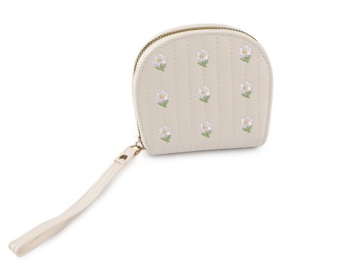 Malá šikovná peňaženka sa zmestí do každej kabelky. Prednú stranu má ozdobenú [výšivkou kvetov]. Tento roztomilý motív prinesie hravý prvok do vášho každodenného štýlu. Peňaženka je vybavená dlhým pútkom na nosenie na zápästí. Zatvára sa na zips. Vnútri nájdete hlavný priestor oddelený prepážkou na dva menšie. V prepážke je mincovník na zips. Po stranách sú ešte 4 priehradky na karty.