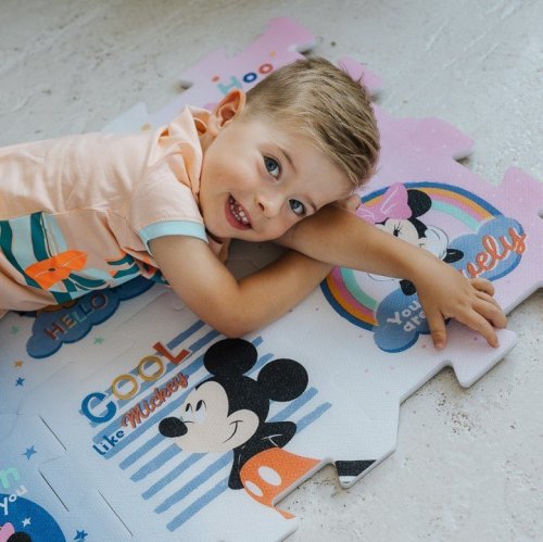 Licenčné penové puzzle. Obsahujú 8 veľkých častí, sú mäkké, farebné, ľahko umývateľné a dajú sa z nich stavať 3D tvary, napr. kocka alebo krabice. Môžu byť tiež použité ako podložka na hranie. Penové puzzle rozvíja detskú predstavivosť a pomáhajú deťom učiť sa farby a tvary. Rozmery balenia 32 x 32 x 13 cm. Vhodné pre deti od 0 mesiacov.