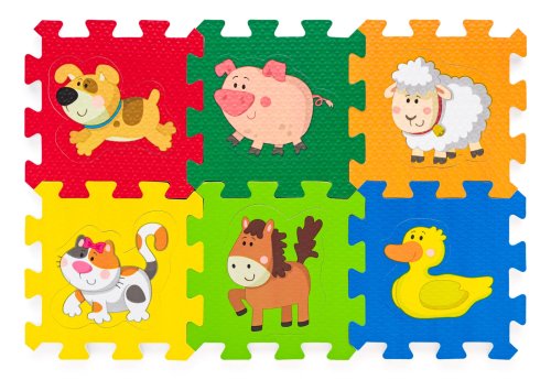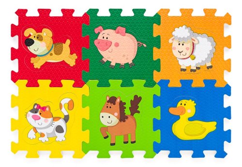 Penové puzzle s vyberateľným stredom zoznámia deti s domácimi zvieratkami.