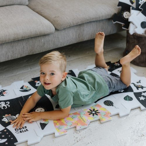 Penová podložka je vyrobená zo špeciálneho materiálu (nejedná sa o klasickú vrúbkovanú EVA penu, ale o materiál podobný silnej karimatke alebo niekoľkovrstvovému mirelonu). Má nadštandardnú hrúbku 1,5 cm a je určená najmä na hranie. Puzzle je mäkké, umývateľné, zdravotne nezávadné, je ľahko manipulovateľné a skladné. Z jednotlivých dielov je možné poskladať kocku, tunel pre autíčka alebo ho možno použiť ako krásnu dekoráciu na stenu. Z ôsmich samostatných dielov je možné vytvoriť plochu približne 117 x 60 cm. Penové puzzle TREFL PUZZLOPIANKA je vhodné aj ako podložka pri hraní s plastelínou alebo maľovaní farbičkami. Po použití puzzle jednoducho utrite vlhkou handričkou.