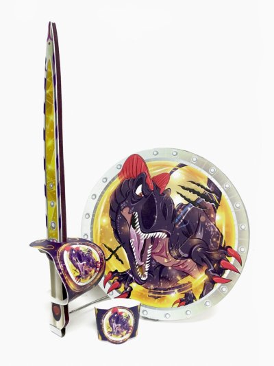 „Detský penový meč a štít s motívom D-Rexa pre malého samuraja. Súprava je vyrobená z peny a je veľmi bezpečná. Vhodné ako doplnok ku karnevalovému kostýmu.“
