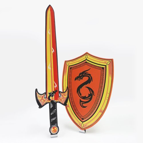 „Detský penový meč a štít s motívom draka pre malého samuraja. Súprava je vyrobená z peny a je veľmi bezpečná. Vhodné ako doplnok ku karnevalovému kostýmu.“