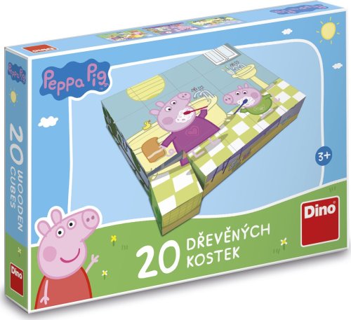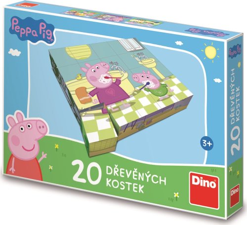 Detské drevené kocky, z ktorých je možné zostaviť 6 rôznych obrázkov. Balenie obsahuje 20 kociek. Vek: 3+