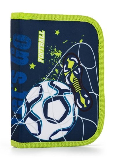 Jednoposchodový školský peračník s 2 chlopňami, prázdny obsahuje 25 gumových pútok na uchytenie písacích potrieb. Na vnútorných chlopniach sú priehľadné fólie na rozvrh hodín.