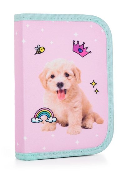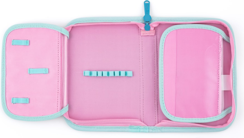 Jednoposchodový školský peračník s 2 chlopňami, prázdny obsahuje 25 gumových pútok na uchytenie písacích potrieb. Na vnútorných chlopniach sú priehľadné fólie na rozvrh hodín.