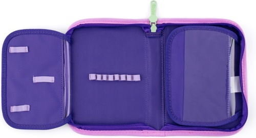 Jednoposchodový školský peračník s 2 chlopňami, prázdny obsahuje 25 gumových pútok na uchytenie písacích potrieb. Na vnútorných chlopniach sú priehľadné fólie na rozvrh hodín.