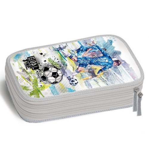 Dvojposchodový školské púzdro GOAL TIME. <br> • peračník ponúka dva úložné priestory pre úschovu písacích potrieb a ďalších školských pomôcok <br> • uzatváranie oboch poschodí je pomocou zipsu s pútkami pre lepšiu manipuláciu <br> • v prvej komore sa nachádzajú gumičky na pravítko, strúhadlo, gumu a pútka pre 10 pasteliek perá a iné potreby <br> • v druhej komore nájdete vložený rozvrh hodín s obrázkom pod fóliou, kde môžu byť uložené aj iné odkazy a lístočky <br> • pod rozvrhom sú ešte 2 pútka z gumičiek <br> • peračník je bez výbavy