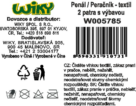 Dvojposchodový peračník s výbavou je určený pre žiakov základnej školy. Každé jednotlivé poschodie sa uzatvára na samostatný zips. Puzdro má pružné gumové pútka na uloženie písacích potrieb.