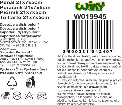 Peračník etue o veľkosti 21x7x5 cm. 6 rôznych farebných prevedení.