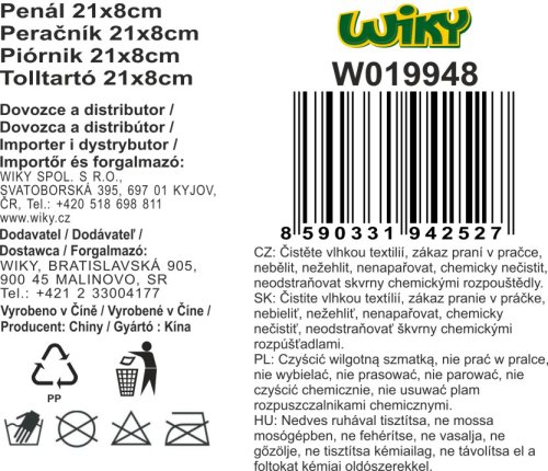 Peračník etue o veľkosti 21x8 cm ZIP. 6 rôznych farebných variantov.