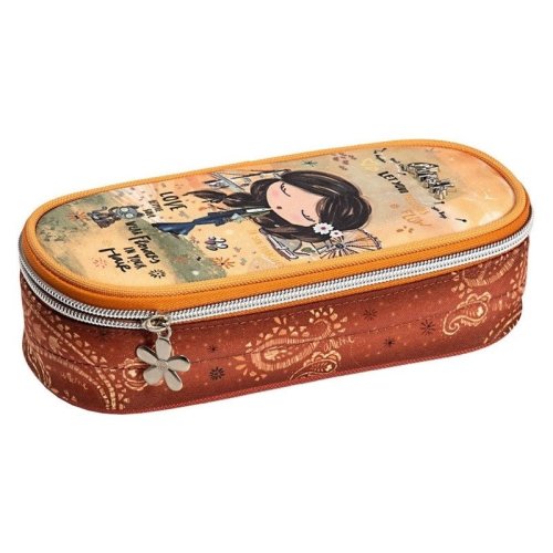 Praktický a priestranný oválny peračník z dielne španielskej návrhárky s motívom dievčatka Anekke.<br> ; • je vybavený vnútorným vreckom na zips a rozvrhom hodín, ktorý je vložený pod fóliou na klope<br> • tá oddeľuje hornú časť peračníka a má na sebe gumičky na uchytenie potrieb na písanie<br> • každý zips je ukončený ozdobou s dizajnom Anekke