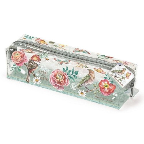 Priehľadný peračník, puzdro na ceruzky alebo perá s potlačou Butterfly garden v dizajnoch školských línií ARGUS, vhodné aj ako puzdro na kozmetiku alebo iné drobnosti pre ženy do kabelky.