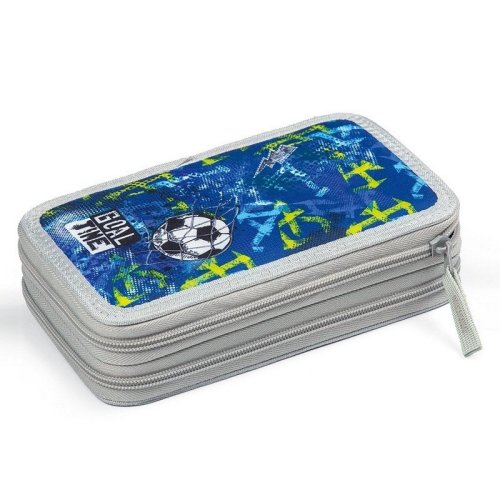 Dvojposchodový školský peračník s motívom GOAL TIME. Peračník ponúka dva úložné priestory na úschovu písacích potrieb a ďalších školských pomôcok. Uzatváranie oboch poschodí je pomocou zipsu s pútkami pre lepšiu manipuláciu. <br> <br> V prvej komore sa nachádza: <br> • 12 ks akvarelová trojuholníková pastelka<br> • 2 ks modré pero<br> • 2 ks ceruzka<br> • 1 ks strúhadlo na ceruzky<br> • 1 ks guma<br> <br> V druhej komore nájdete: hrubým hrotom<br> • 1 ks pravítko 15 cm<br> • 1 ks rozvrh hodín