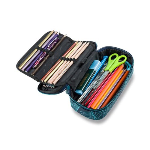 zatváranie na zips, * na hornej vnútornej klope vrecko s uzatváraním na zips a ďalšie dve vrecká na drobnosti, * rozložiteľná prostredná klopa s 20 pruženkovými pútkami a uzatváraním na suchý zips, PENÁL DODÁVAME PRÁZDNÝ. Vybaviť ho môžete písacími potrebami alebo pastelkami a fixkami.