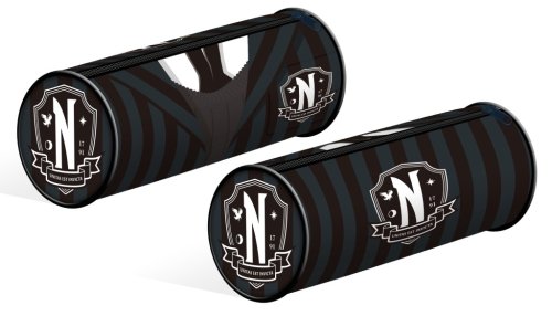 Okrúhly peračník s uzatváraním na zips s licenčným motívom Wednesday.