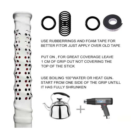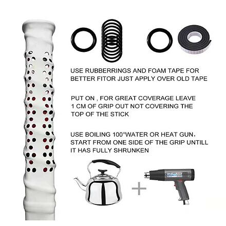 Koncovka na hokejku Merco Perf Shrink Grip nahrádza klasické textilné omotávky na hornú časť hokejky a je vhodná pre hráčov aj brankárov. Polyetylénová koncovka je príjemná na dotyk a chráni rukavicu proti skorému opotrebovaniu. S koncovkou budete mať väčšiu kontrolu nad hokejkou. Na konci nechajte pri nasadzovaní približne 3 cm presah, aby tak koncovka dobre držala na hokejke. Koncovku jednoducho upevníte pomocou priložených krúžkov či pásky a potom odporúčame použiť teplovzdušnú pištoľ. Pokiaľ ju nemáte k dispozícii, výrobca uvádza tiež možnosť poliať vriacou vodou na jej stiahnutie. - zmrštiteľný návlek s perforáciou - rozmer: 25 x 6.4 cm - materiál: PE