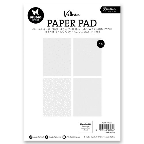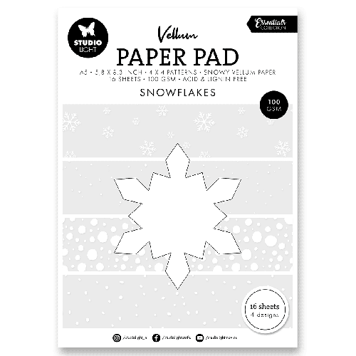 Průsvitné vellum papíry se 4 různými potisky sněhových vloček na adventní tvoření.
