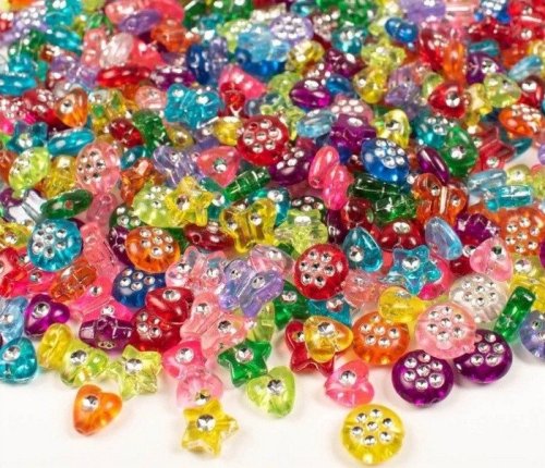 Korálky zmiešaných farieb v rôznych tvaroch s prvkami trblietavých kamienkov. Vytvorte si náramky a náhrdelníky, alebo prečo nie peknú dekoráciu na kľúčenku. Lepenie alebo prišívanie korálikov na akýkoľvek povrch je tiež príjemné. Popustite uzdu svojej fantázii a kombinujte ich s korálkami v iných farbách a tvaroch v nekonečných variáciách.