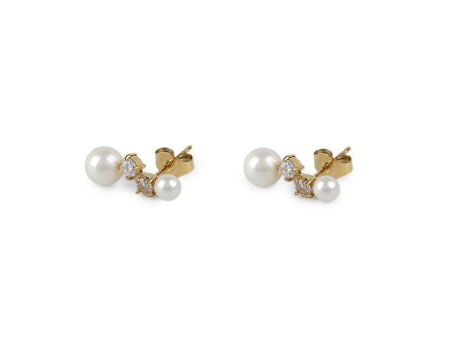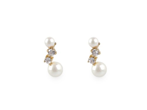 Náušnice z nerezovej ocele sú ozdobené brúsenými kamienkami a perlami. Ich veľkosť je decentná, ale pôsobí luxusným dojmom. Vďaka puzetovému zapínaniu je nasadzovanie a nosenie veľmi pohodlné, takže ich môžete mať na ušiach celý deň.