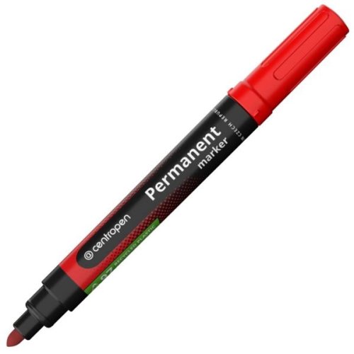 Permanentný popisovač na neporézne materiály Po zaschnutí je fixka veľmi odolná voči vode, oderu aj teplote 100°C Popisovač Centropen použite na popis kartónových krabíc, papier, sklá, gumy, porcelánu, …