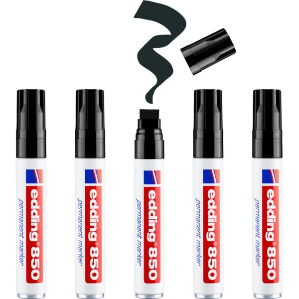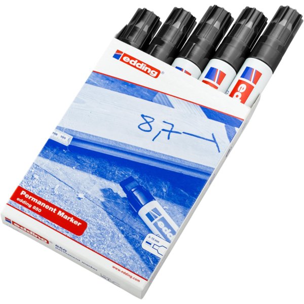 • Univerzálny permanentný popisovač edding 850 s veľmi širokou stopou využijete na trvalý popis najrôznejších povrchov (kov, drevo, plast, sklo, kartón, koža)