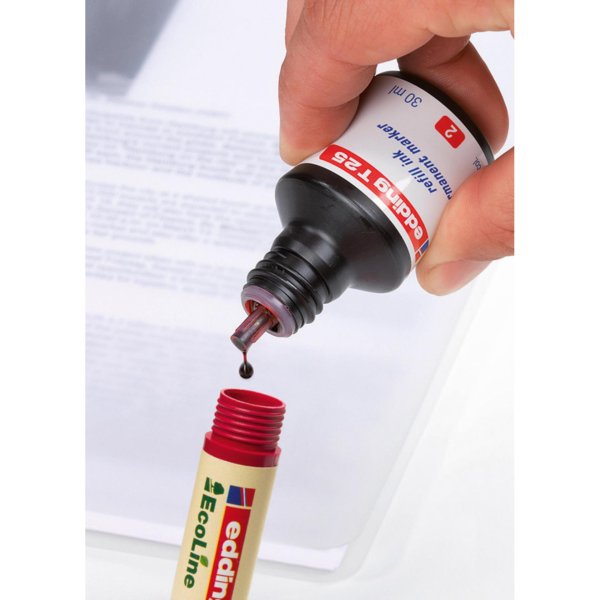 • Možnosť naplnenia vypísaného popisovača aj možnosť výmeny hrotu pomáha znižovať množstvo kancelárskeho odpadu