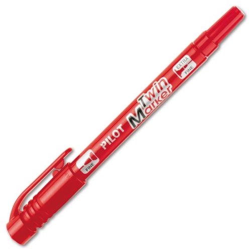 Permanentný popisovač Pilot Twin, dvojhrotý, červ.