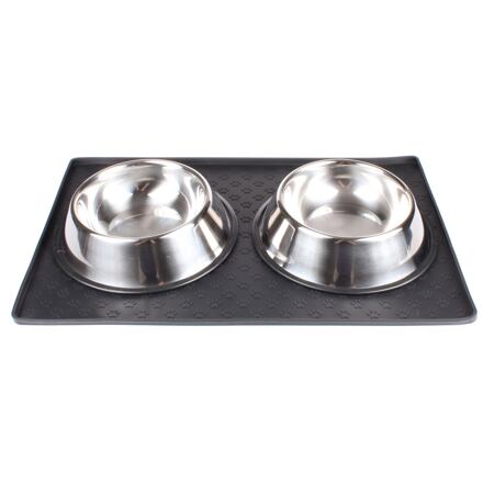 Robí váš domáci maznáčik neporiadok? Tak vám určite skvele poslúži táto silikónová podložka pod misky Pet Mat Small. Podložka s dizajnom psích labiek má rozmery 47 x 30 cm. Je opatrená vysokým okrajom a zamedzuje vysypaniu krmiva a rozliatiu vody z misky všade po okolí. V ponuke máme na výber z dvoch farieb šedej a čiernej. Vhodné pre psy, mačky a ďalšie domáce zvieratá. Parametre: rozmery: 47 x 30 cm hmotnosť: 275 g materiál: silikón, BPA free