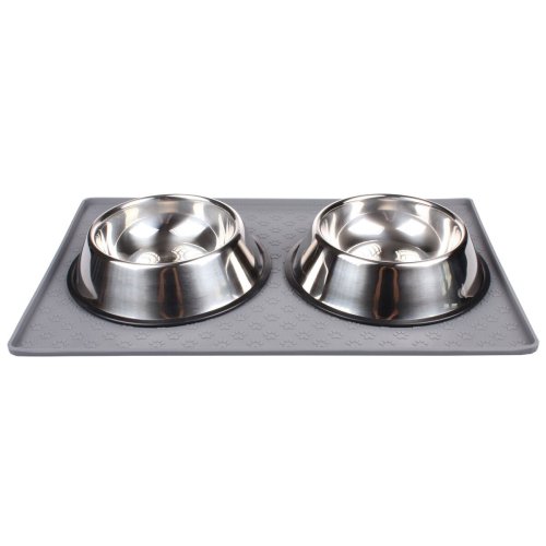 Robí váš domáci maznáčik neporiadok? Tak vám určite skvele poslúži táto silikónová podložka pod misky Pet Mat Small. Podložka s dizajnom psích labiek má rozmery 47 x 30 cm. Je opatrená vysokým okrajom a zamedzuje vysypaniu krmiva a rozliatiu vody z misky všade po okolí. V ponuke máme na výber z dvoch farieb šedej a čiernej. Vhodné pre psy, mačky a ďalšie domáce zvieratá. Parametre: rozmery: 47 x 30 cm hmotnosť: 275 g materiál: silikón, BPA free