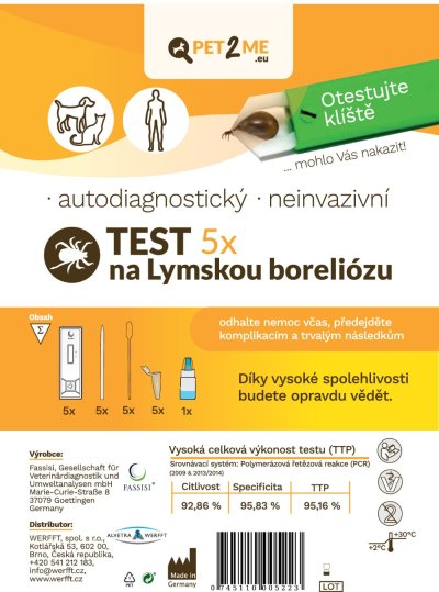 Prečo je priame testovanie kliešťa užitočné? Ihneď po odstránení kliešťa je možné Test kliešťa Pet2Me použiť na určenie, či je kliešť nositeľom borrélie. Test možno použiť na kliešť, ktorý bol prisatý na človeku, ale aj zvieraťu. Nevyhnutné vybavenie domácnosti na prevenciu pred vážnymi následkami rozvinutej a neliečenej choroby.