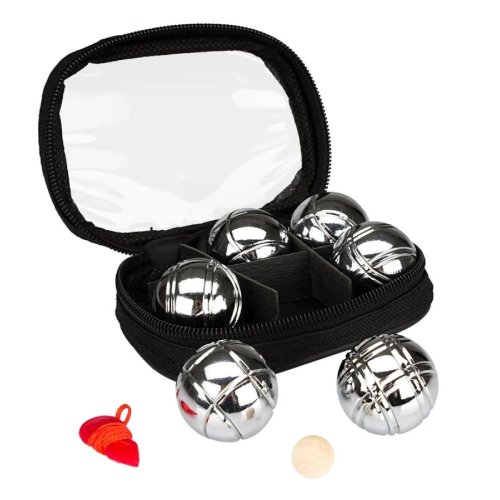 Slávna francúzska spoločenská hra pétanque v detskom prevedení to je sada Petanque Mini od firmy Get&Go. Táto sada je určená pre dvoch hráčov, kedy každý z hráčov má k dispozícii tri gule s rovnakým ryhovaním, pomocou ktorých sa ich hádzaním snaží čo najviac sa priblížiť k terču v podobe malej guličky (košónu). Hru pétanque si najviac užijete na piesku alebo na tráve. Sada obsahuje: 6x hracia guľa, 1x drevený košonek, 1x meracia šnúrka, praktický obal. - pochrómované oceľové guličky, priemer 32,8 mm - hmotnosť oceľovej guličky cca. 62 gramov - prírodný drevený košonek, priemer 12,7 mm - 98 cm meracia šnúra, 98 cm - polyesterový obal na uskladnenie a jednoduché prenášanie - nie je vhodné pre deti mladšie ako 3 roky