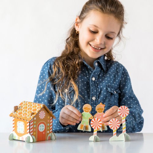 Zostavte si trblietavú scénu z rozprávky o perníkovej chalúpke, s figúrkami Janko a Marienky. Skladačka je vhodná aj pre malé deti, je dostatočne odolná a vhodná na každodenné hranie. Svojou trblietavou potlačou prežiari každú policu, či stolík. Vyrobené z recyklovaného papiera potlačeného nezávadnými a ekologickými rastlinnými atramentmi. Hlavné vlastnosti: 4 obojstranne potlačené archytřpytivá potlač