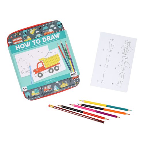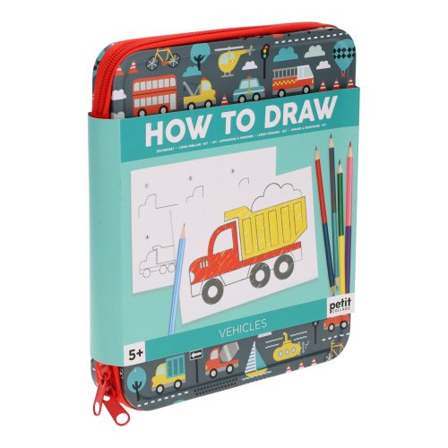 Návod, ako krok po kroku nakresliť 36 rôznych vozidiel, od bicyklov cez balóny a po lode. Táto zábavná hračka je zabalená v kovovom peračníku so zipsom a môžete si ju tak vziať kamkoľvek so sebou. Hlavné vlastnosti: obsahuje návod, kresliacu podložku, 4 obojstranné pastelky a ceruzku s gumou natlačené netoxickými farbami spĺňa všetky bezpečnostné normy
