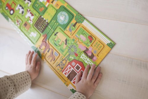 Nasledujte cestičky, dorazíte vďaka nim do niekoľkých rôznych destinácií! Nájdete na farme všetkých 20 z týchto destinácií? Zábava začína po zložení tohto 10-dielneho puzzle. Deti nasledujú bludisko prstom, počas tejto cesty musí nájsť 20 rôznych predmetov. Hlavné vlastnosti: 10 veľkých dielikov puzzleChoďte po bludisku prstom a nájdite 20 predmetovNatlačené na recyklovanom papieri farbami na báze zeleninySpĺňa a prekonáva všetky bezpečnostné štandardy