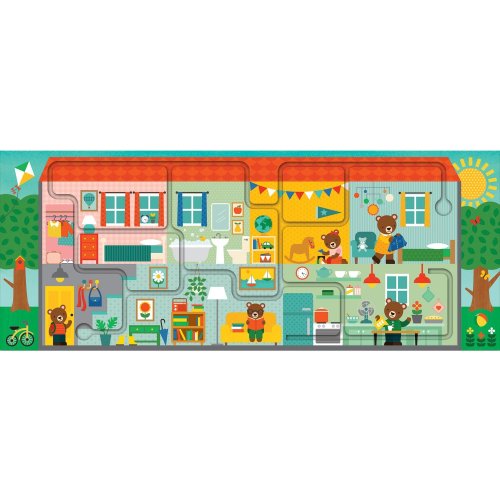 Pohybujte sa po cestičke v obrázku a pripravte medvieďa na večierku! Nájdete v tomto krásnom domčeku všetkých 20 predmetov? Zábava začína po zložení tohto 10-dielneho puzzle. Deti sa prstom pohybujú po cestičke a zároveň sa snažia nájsť 20 predmetov rozmiestnených po dome. Hlavné vlastnosti: Obsahuje 10 veľkých dielikov puzzleVyrobené z recyklovaného papiera, natlačené atramentom zo zeleninySpĺňa všetky bezpečnostné normy