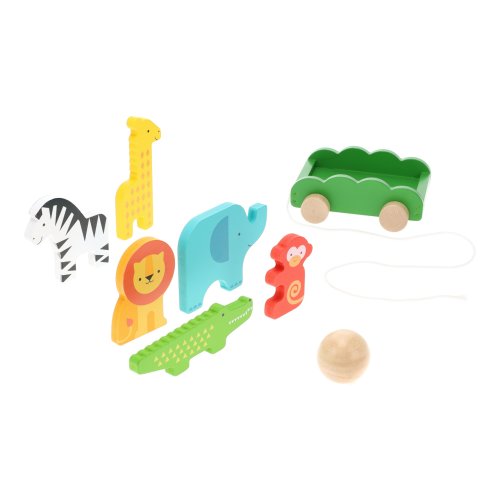 Pestrofarebné figúrky usmievavých zvieratiek vo vozíku čakajú, kým ich deti rozostavia a pokúsia sa ich zvaliť pribalenou guľou. Vďaka rozličným tvarom je zrážanie figúrok rôzne ťažké. Zvieratká je možné ľahko využiť aj pri mnohých iných fantastických hrách. Hračka pomáha rozvíjať hrubú motoriku, koordináciu pohybu a senzomotorické schopnosti. Hlavné vlastnosti:vozík, 6 figúrok a gulehra a ťahacia hračka v jednom