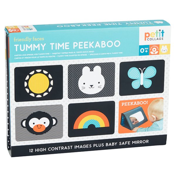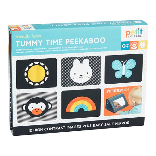 Juk alebo kuk? Striedajte hravé kontrastné ikony zvierat s pohľadmi do zrkadla. Čas na brušku - zrkadlo s obrázkami Peekaboo je kúzelným doplnkom pre interaktívne a zábavné chvíle s Vaším bábätkom. Toto unikátne zrkadlo je navrhnuté s ohľadom na potreby rodičov a ich najmenších. Séria obrázkov, ktoré znázorňujú roztomilé zvieratká prinášajú úsmev na tvár Vášho dieťaťa. Táto hra "peekaboo" (česky "ku-ku") je nielen zábavná, ale taktiež podporuje rozvoj dieťaťa, najmä jeho zmyslové vnímanie a motorické zručnosti. Hlavné vlastnosti: prebal (podstava) so zrkadielkom a 6 obrázkovpraktické balenie