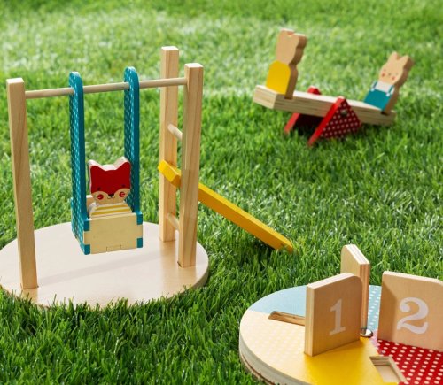 Poďte sa pohrať na ihrisko so zvieracími kamarátmi líškou, medveďom a zajačikom! Vďaka zábavným atrakciám vrátane kolotoča, hojdačky a hojdačky so šmykľavkou a trom zvieracím postavičkám si deti užijú veľa zábavy. Pohojdajte sa na hojdačkách, zíďte zo šmykľavky alebo sa točte na kolotoči. Drevená súprava zlepšuje jemnú motoriku, prehlbuje pochopenie príčiny a následku, rozvíja emočné vnímanie a podporuje samostatné hranie. Je vyrobená z FSC® dreva a FSC® papiera, obal je potlačený s využitím 75% recyklovaných materiálov a je plne recyklovateľný. Obsah balenia: hojdačka so šmykľavkou, hojdačka, kolotoč, 3 postavičky zvieratiek - líška, medvedík, zajačik. Hlavné vlastnosti: vyrobené z FSC® dreva a FSC® papieru plne recyklovateľný obal rozvíja jemnú motoriku podporuje samostatné hranie vhodné od 3 rokov. Značka FSC® na výrobku znamená, že svojim nákupom pomáhate chrániť lesy a podporujete šetrné, zodpovedné či prírode blízke hospodárenie, vďaka ktorému sú naše lesy stabilnejšie, zdravšie, majú prirodzenú druhovú skladbu a lepšie odolávajú negatívnym následkom klimatických zmien.