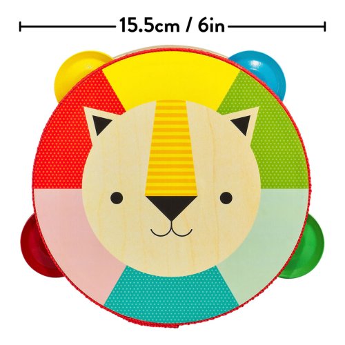 Zahrajte na tamburíne a zatancujte si! Drevená tamburína s ilustráciou dúhového leva deti inšpiruje k tvorbe hudby. Tamburína má 4 cimbálky, je vyrobená z topoľovej preglejky a je nafarbená netoxickými rastlinnými farbami. Hlavné vlastnosti: Ideálne pre začínajúcich hudobníkov4 cimbálkypestrofarebný designpotlačené netoxickými farbami a lakom na vodnej báze