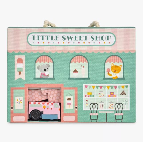 Čas na sladkú odmenu! Natiahnite zmrzlinárske auto a sledujte, ako ide okolo cukrárne k svojmu cieľu! Perfektná hračka pre hodiny predstavivej hry. Škatuľku je možné jednoducho prenášať vďaka madlu z lana. Hlavné vlastnosti: obojstranná cukrárnadrevené naťahovacie zmrzlinárske auto8 ks trate10 ks ďalších herných dielikovjednoducho zostaviteľná traťbalené bez plastu s ohľadom na životné prostredievhodné domov aj na cestypre deti od 3 rokov Značka a certifikát FSC® (Forest Stewardship Council) zaručuje, že drevo, z ktorého vyrobený, nebolo vyťažené nelegálne a pochádza z lesov obhospodarovaných šetrným či prírode blízkym spôsobom, v ktorom sú dodržiavané prísne environmentálne a sociálne požiadavky. Značka FSC® na výrobku znamená, že svojim nákupom pomáhate chrániť lesy a podporujete šetrné, zodpovedné či prírode blízke hospodárenie, vďaka ktorému sú naše lesy stabilnejšie, zdravšie, majú prirodzenú druhovú skladbu a lepšie odolávajú negatívnym následkom klimatických zmien.