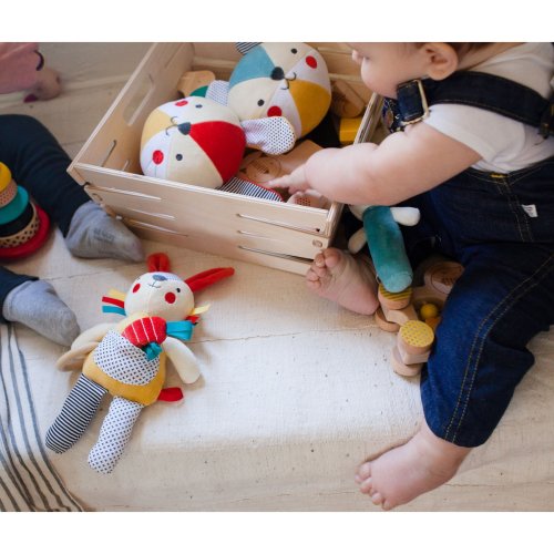 Zábava s hrkajúcim zajačikom. Ručne vyrobené, mäkký hrkajúci zajačik je ideálny pre uchopenie do drobných rúk. Hrkálka je vyrobená z organickej bavlny najvyššej kvality s certifikáciou GOTS. Vhodný od narodenia. Hlavné vlastnosti: Rozvíja motorikuVyrobené z organickej bavlny (certifikované GOTS)Vyplnené certifikovaným recyklovaným polyesteromVhodné od narodenia