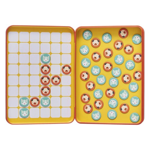 Mačky versus psy! Magnetická hra perfektná na cesty. Skúste postaviť do radu 4 mačky či psy za sebou, sú to v podstate zvieracie piškvorky... Hlavné vlastnosti: Skvelá cestovná hračka v kovovej krabičke Natlačené netoxickými farbami, ktoré berú do úvahy zdravie detí a planétu