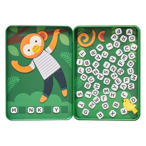 Uhádnite tajné slovo svojho spoluhráča skôr, ako dokončí obrázok opičky! S touto cestovnou magnetickou hrou si deti rozvinú slovnú zásobu – je to v podstate vylepšená hra šibenice... Hlavné vlastnosti: Skvelá cestovná hračka v kovovej krabičke Natlačené netoxickými farbami, ktoré berú do úvahy zdravie detí a planétu