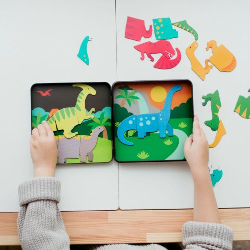 Video je iba ilustračné, zobrazuje príbuzný produkt. Počujete rev dinosaurov? Postavte si vlastnú scénu s dinosaurami a prežite vďaka herným dielikom prehistorické príbehy. Hračka neobsahuje plastové časti a je vhodná na hru doma aj na cestách . Hlavné vlastnosti Prehistorické príbehyDielky, ktoré môžete rôzne kombinovať a vytvárať vlastné dinosauramiV balení 2 pozadia a 21 magnetických dielikovZabalené v kovovej krabičke bez obsahu plastuVhodné na doma aj na cestyVhodné od 3 rokov