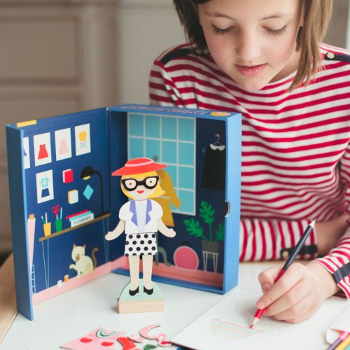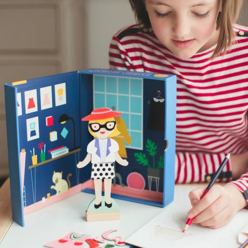 Video je iba ilustračné, zobrazuje príbuzný produkt. Táto zábavná hračka pre mladých dizajnérov zabaví deti svojou kreativitou. Budú vytvárať celkový outfit, vrátane doplnkov. Perfektná hračka pre mladých nadšencov módy. Vďaka tejto hre môžu vytvoriť viac ako 100 outfitov, budú mať teda predstavivú zábavu na mnoho hodín. V balení nájdete magnetickú figúrku s dreveným stojanom, 36 magnetických dielikov oblečenia, 4 obojstranné pastelky a 35 nálepiek. Krabička má aj vo vnútri pekné pozadie. Obal je vyrobený z 25% recyklovaných materiálov, natlačený netoxickými farbami na báze sóje. Neobsahuje BPA, ftaláty, olovo ani formaldehyd. Hlavné vlastnosti Kreatívna hračka, ktorá trénuje predstavivosť36 ks magnetického oblečenia4 pastelky35 nálepiekObal vyrobený z recyklovaných eko materiálovZdravotne nezávadné