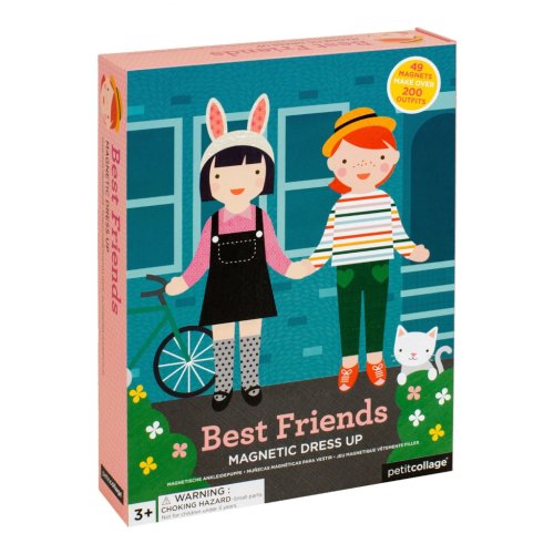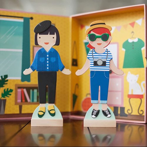Sada obliekacích dievčat v krabičke uzatvárateľnej magnetom s 27 ks magnetických častí - doprajte Vášmu dieťaťu vytvoriť až 80 rôznych kreatívnych kombinácií moderných outfitov. Hlavné vlastnosti: 2 veľké dievčatá 2 drevené stojančeky27 magnetických častí