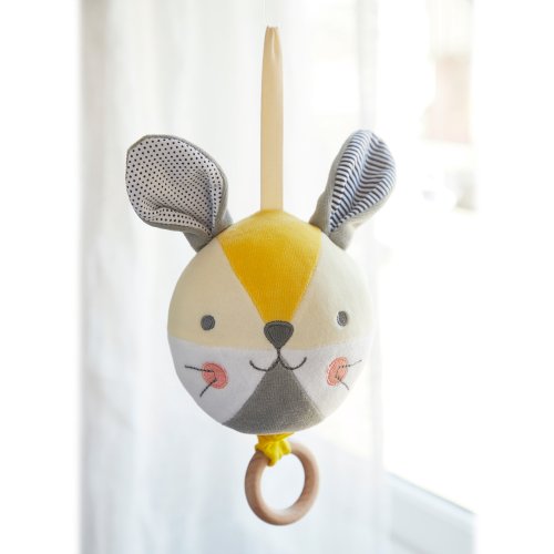Poddajná a mäkučká loptička v podobe zajačika spoľahlivo uspáva Vaše bábätko. Po zatiahnutí za drevený krúžok prehrá 2 minúty upokojujúce melódie piesne „You Are My Sunshine“. Vyrobené z organickej bavlny. Hlavné vlastnosti: prehráva melódiu bez batériovú prevádzku