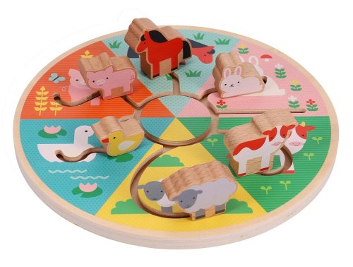 Na zelenej lúke sa páse koník, medzi kvitnúcimi leknami sa kúpe kačička, kdeže nájdem kravičku? Pomôžte zvieratkám nájsť cestu domov! Jednoduché bludisko hravou metódou podporuje psychomotorický vývoj dieťaťa a učí poznávať domáce zvieratká tka. Hlavné vlastnosti: základňa a 6 zvieratiek rozvíja motorické zručnosti detí a koordináciu vyrobené zo 100% FSC® dreva Značka a certifikát FSC® (Forest Stewardship Council) zaručuje, že drevo, z ktorého bol produkt vyrobený, nebolo vyťažené nelegálne a pochádza z lesov obhospodarovaných šetrným či prírode blízkym spôsobom, v ktorom sú dodržiavané prísne environmentálne a sociálne požiadavky. Značka FSC® na výrobku znamená, že svojim nákupom pomáhate chrániť lesy a podporujete šetrné, zodpovedné či prírode blízke hospodárenie, vďaka ktorému sú naše lesy stabilnejšie, zdravšie, majú prirodzenú druhovú skladbu a lepšie odolávajú negatívnym následkom klimatických zmien.